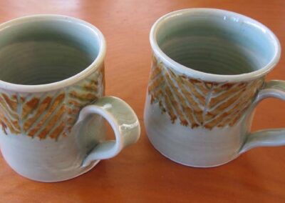 We moved to the Tapu Valley on the Coromandel around 1980 as our family grew, and my intention to continue potting was put on hold while I built our house. Meanwhile cheap ceramic imports flooded into New Zealand and the game changed. A flood of a different type littered the river terraces of our land with headlogs left in the bush by early timber men and I entered a new phase working with figured kauri making furniture as Square Kauri Construction. And then in the early 2000s to Parua Bay where I purchased a gas kiln and re-awoke to the joy of clay and fire like some latter day Rip van Winkle. I’m back in the Leach tradition making high-fired domestic stoneware and porcelain with celadon, copper red and ash glazes – designed to be functional and enjoyed in daily use.