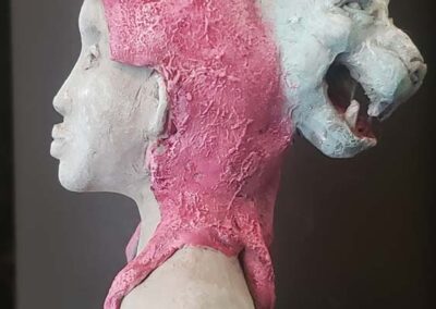 In 2023 I began teaching myself sculpture in clay. A year down the journey I’m still very excited every time I create a 3D piece, as sculpting is for me a very tangible way of bringing together my inner and outer realities.