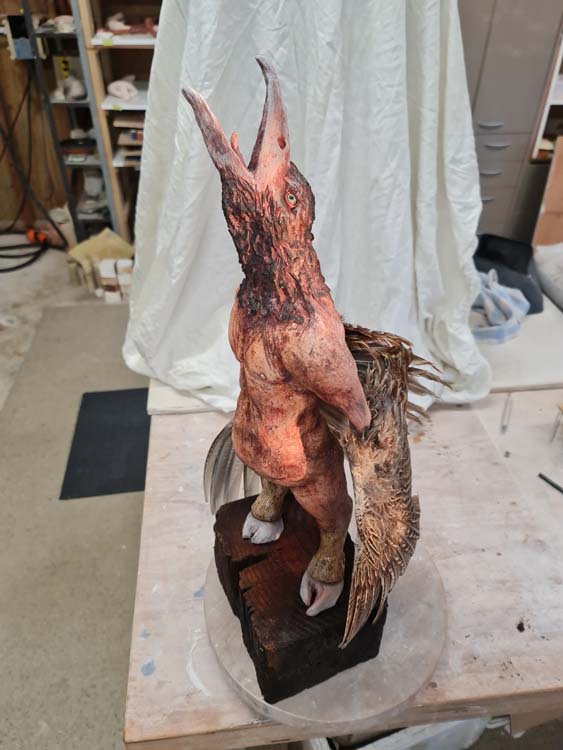 My sculptures have emerged to show emotion, be that negative or positive. I use human facial expressions on my creatures, and I feel they express their positions in non-verbal communication, which evokes how we all relate, to some degree. Sometimes screaming, sometimes scowling and maybe condescendingly smirking. I tend to lean more towards the ugly and the macabre. I find it more interesting to look at the hypothetical cracks and creases of the inner soul that time has created. I have no plan for the path my work will take in the future, I trust the process of life.