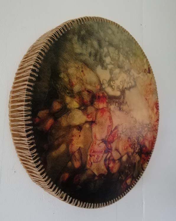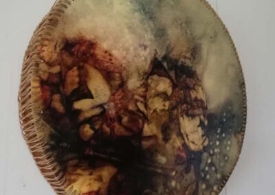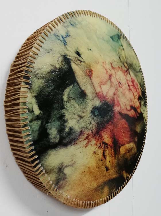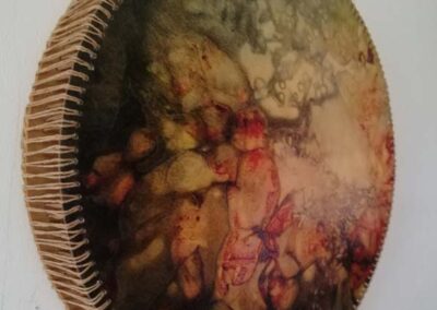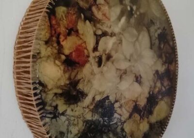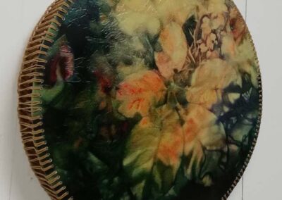 Eco art results vary and give quite a mystical feel to the work. The wax on the piece is embossed giving the work more depth.