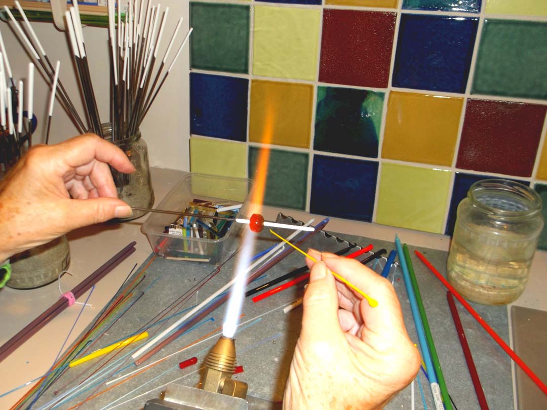 While living in Tasmania I discovered the art of glass bead making to add to my passions. Using a propane oxygen torch, a kiln and imported Murano glass I slowly added the ancient Venetian tradition of glass bead blowing to embellish my one of a kind jewellery.