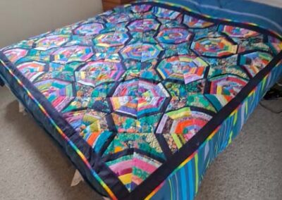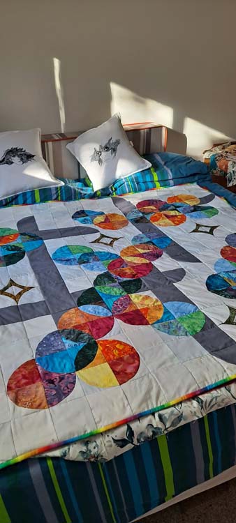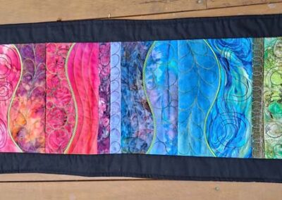 Starting my first quilt as a ten year old, progressing to making my children’s clothes including stretch and grows and ball gowns, to quilting and fabric art.