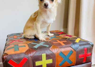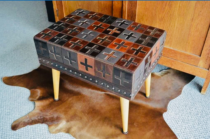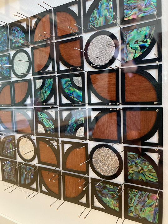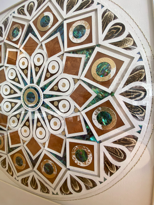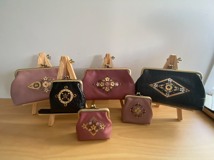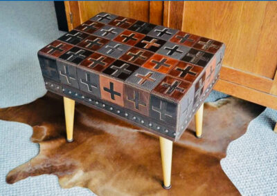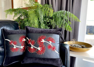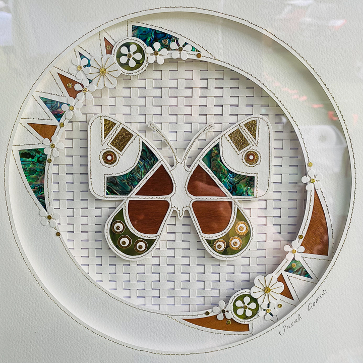 Sarah is unapologetically “more is more” in her creative approach, and whatever the medium her work always has great attention to detail at the heart of the finishing. Whether it’s a reloved leather-upholstered footstool, a hand-beaded lambskin purse or framed paper, native timber and paua artwork, one of the standout characteristics of her work is the longer you look the more you’ll see. There’s an old saying “the devil is in the detail”, but Sarah would argue that’s where the beauty and the wonder will be found.