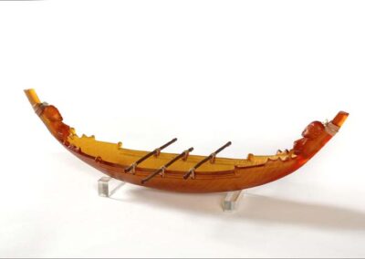 started in early childhood. I can remember removing the bark from our tree tomato tree to make a canoe. Since then I’ve lived on a yacht, sailed the pacific, and researched the seafaring culture of the South Pacific. My sculptures reflect the histories of distant cultures, united by their relationship with the ocean. They pay homage to my Celtic heritage and the culture of my homeland, New Zealand. They convey the idea of migration, narrative, and transportation of cultural beliefs and traditions. These sculptures allude to the importance of the sea in the practical and spiritual life of these cultures.