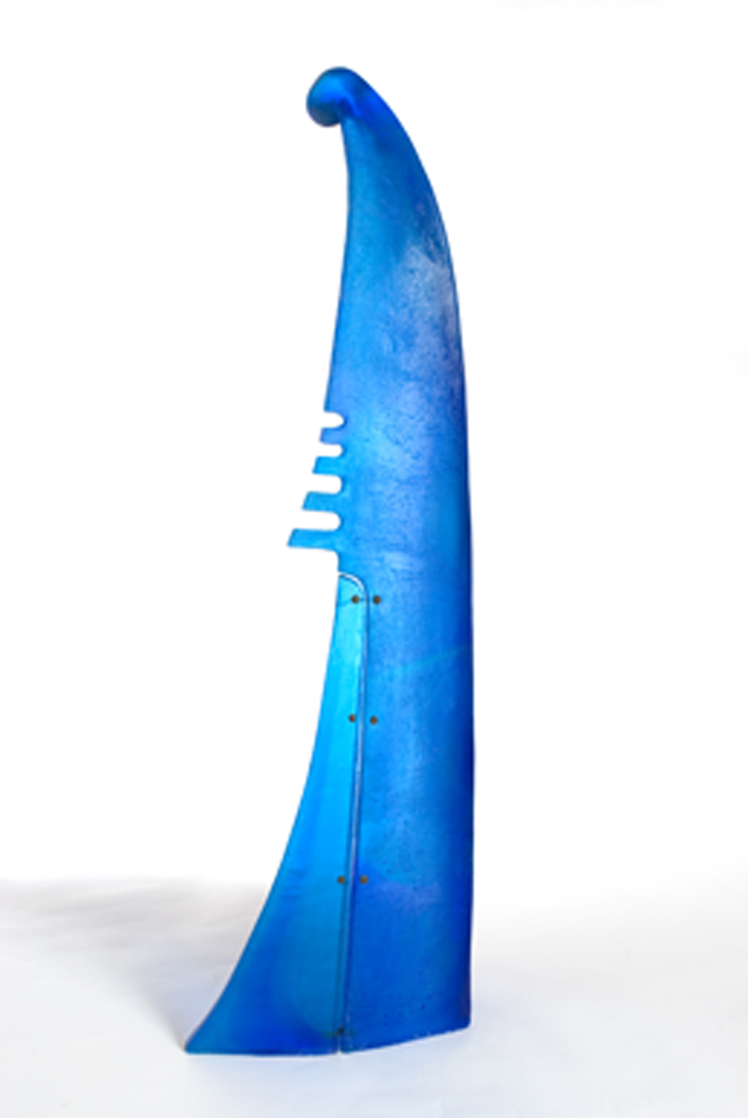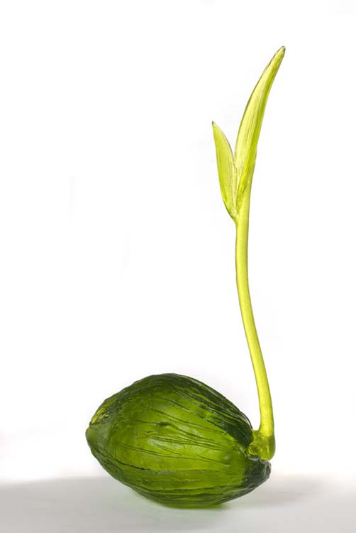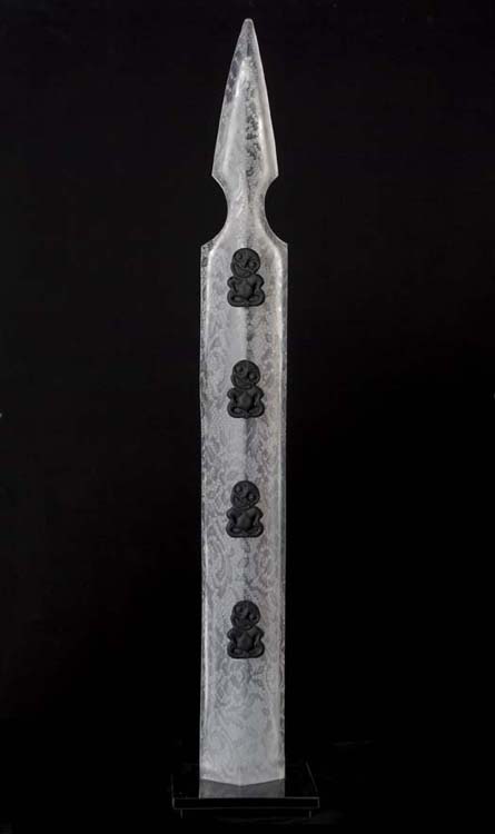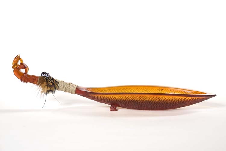 I was born 1940 in Whangarei. My Cast glass work has been influenced by NZ, Celtic and Pacific culture and imaging. Tattooed Palm Forms, Pacific Pods, Coconuts, Limpets etc. Growth and a reflection of our affinity with the sea and things Pacific. The patterns are individually carved into the wax and tell a story.