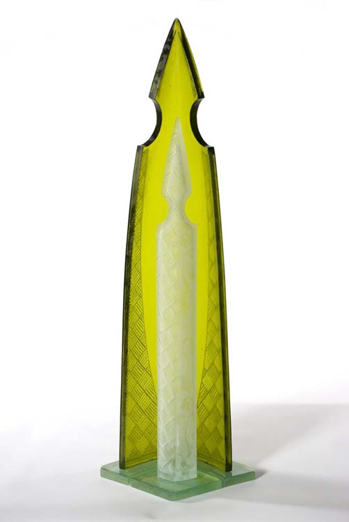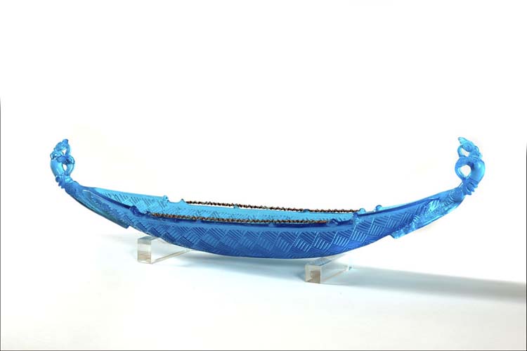 Glass with it’s colour, transparency and reflection is an ideal medium to express the essence of water and the spiritual nature of these vessels.
