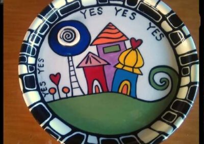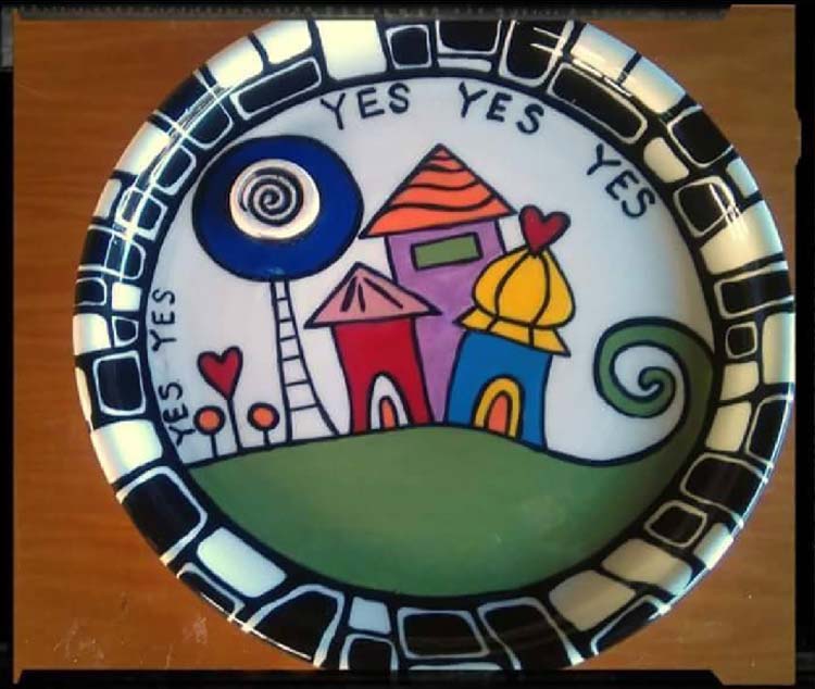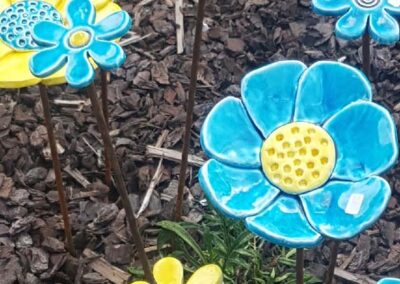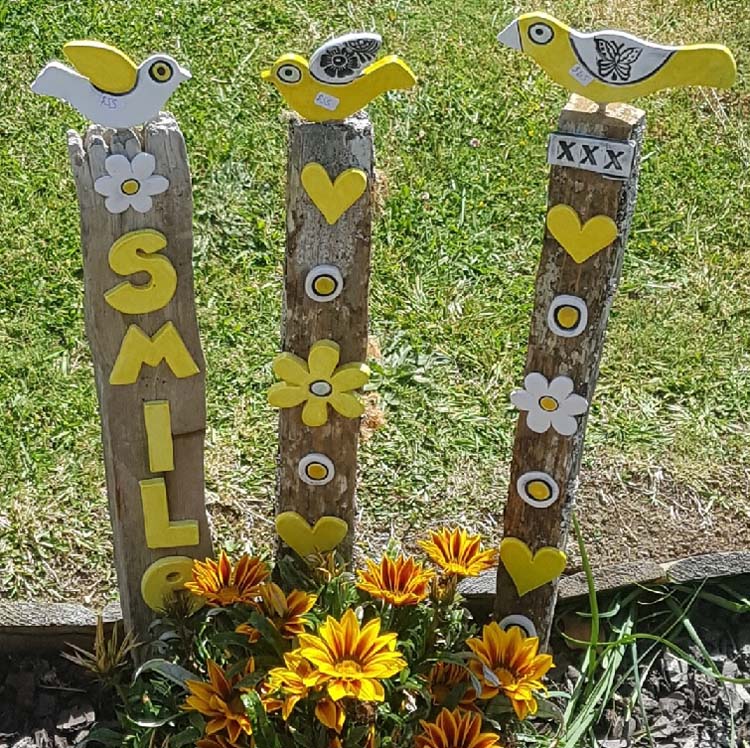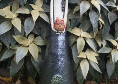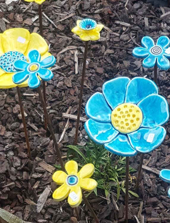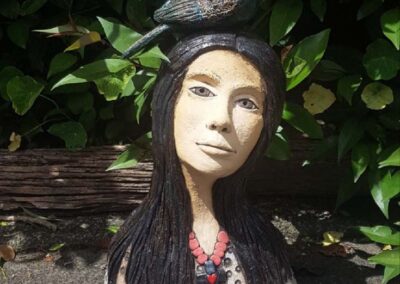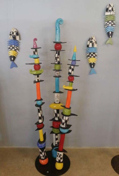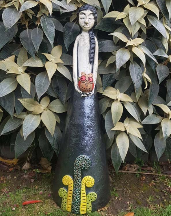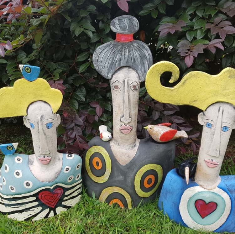 She is diverse in her subject matter and use of colours as you can see in her sculptural ladies and the whimsical garden art she creates.